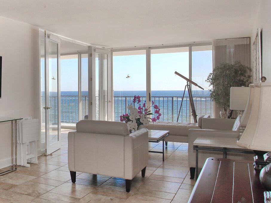 A Rare Find. Spectacular Direct Ocean Views from three rooms. It's Paradise to live on the beach on Palm Beach Island. This unit is unique and certainly not for everyone. Enjoy the unforgettable views as you lounge on the 40 Foot Balcony. An elevator ride to the 1st floor will take you to the pool area. You will find covered canopies, umbrella tables, two large gas grills, and steps to the sandy beach. Also enjoy the many amenities: Gym, saunas, Car Wash, Billards, Library and bike room. 15 min. to PBI airport and a short walk to shopping, and dining. Short drive to Worth Avenue, Phipps ocean Tennis, Four Seasons Hotel and Par 4 Golf Course.