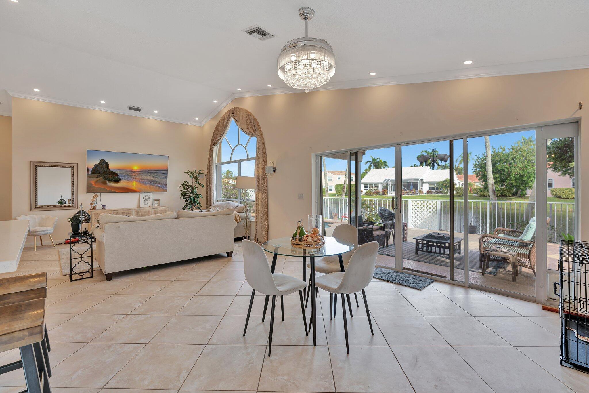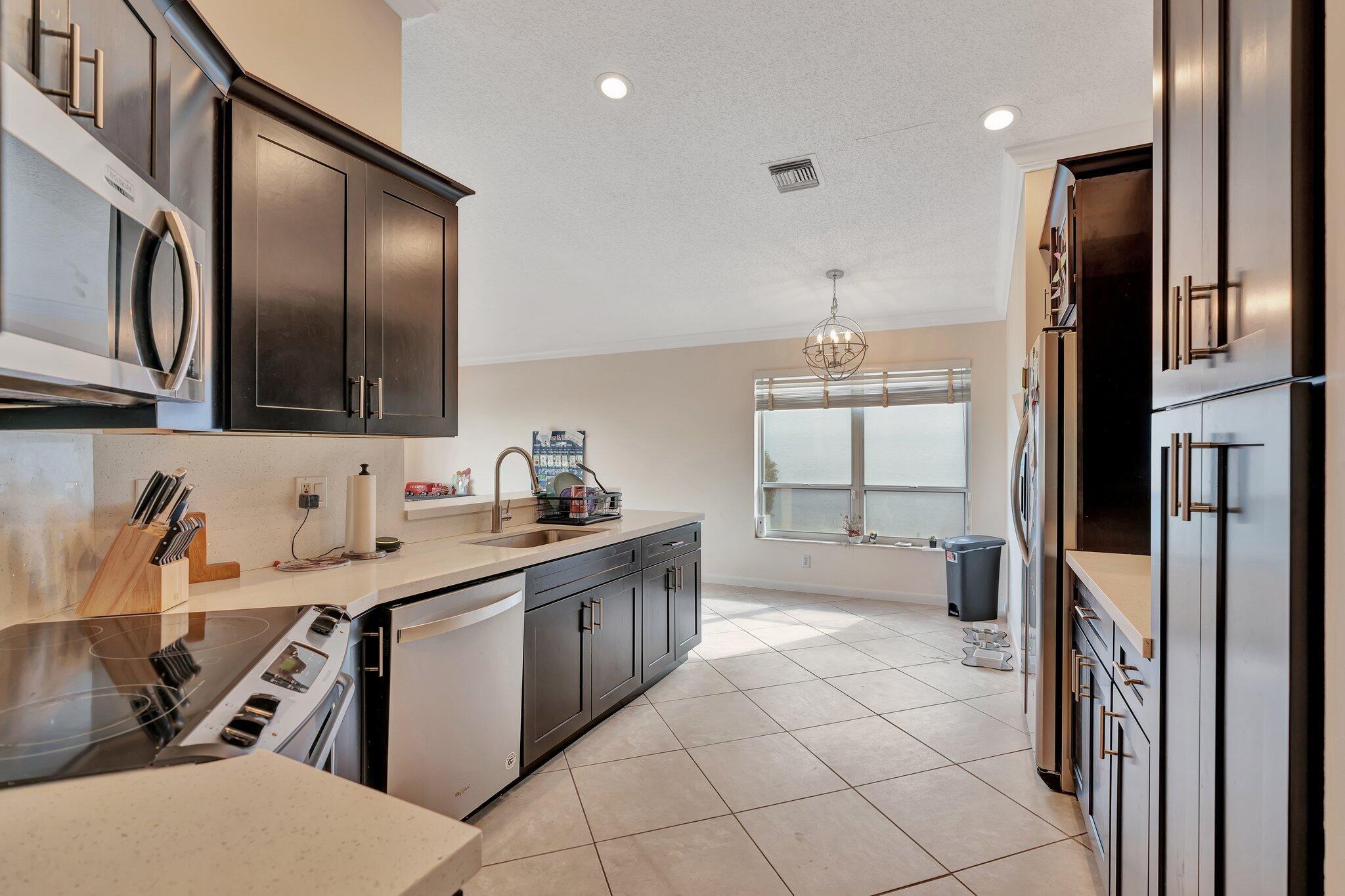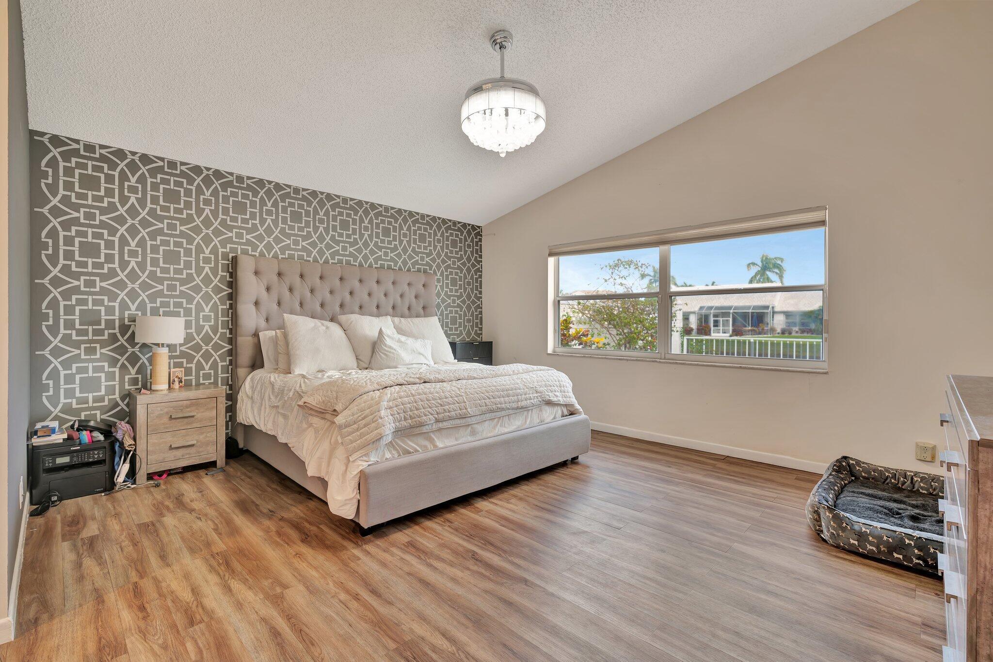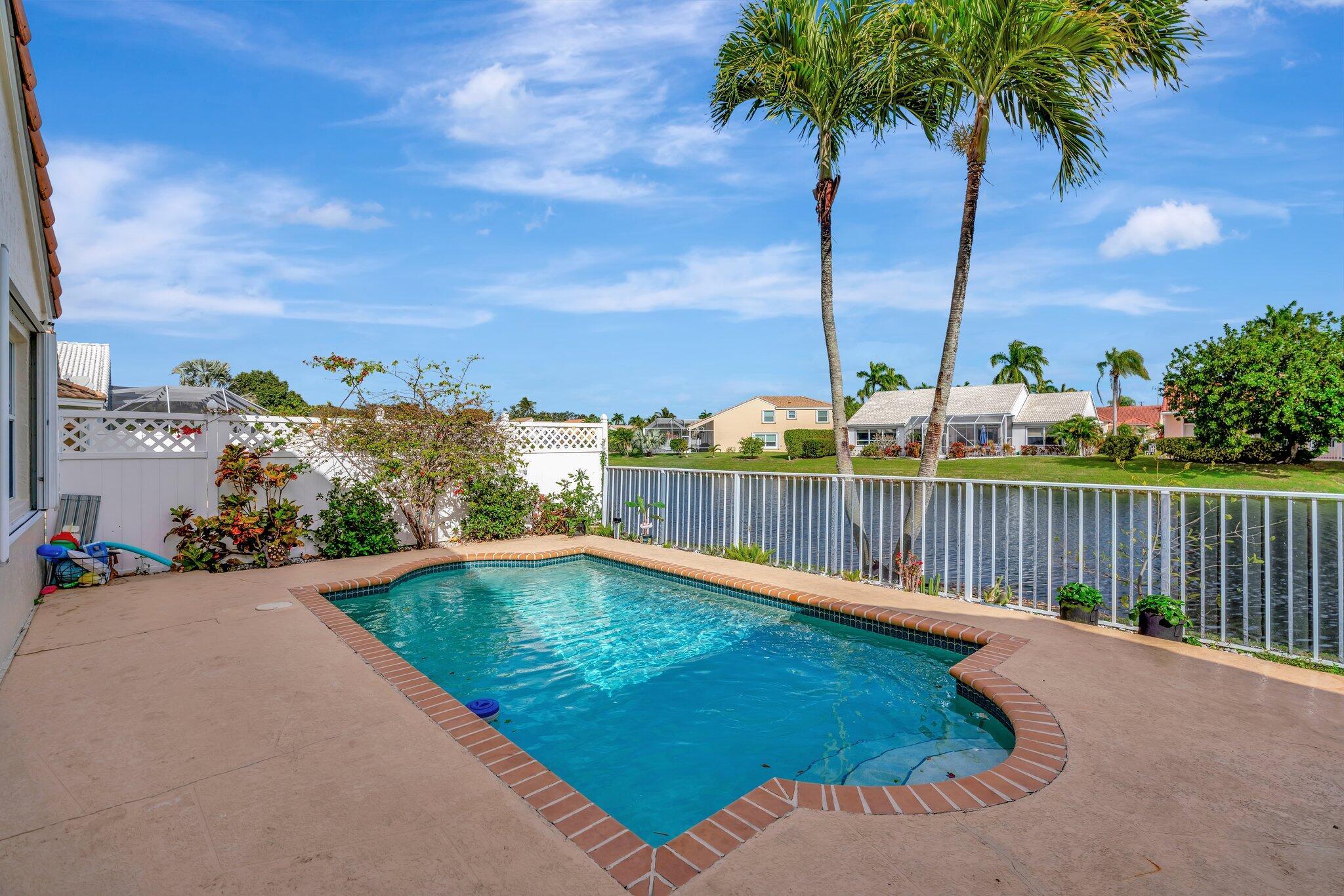 This is it! Stunning one level 3 bedroom pool home with beautiful eastern sunrise over yard and lake horizon. Completely renovated kitchen, completely painted march 2025 interior, soaring ceilings, tremendous lighting, centerpiece epic size window, overlooking pool. Newer roof, newer appliances, exterior paint 2 years ago. Tile and hardwoods in the bedrooms Chandeliers and fandeliers!Incredible association, fee only 234 a month includes: high speed internet, cable, and lawn care. Plus pool, pickleball, tennis and clubhouse!!AC is almost brand new with balance of 10 year transferable labor warranty! 2 Car garage.