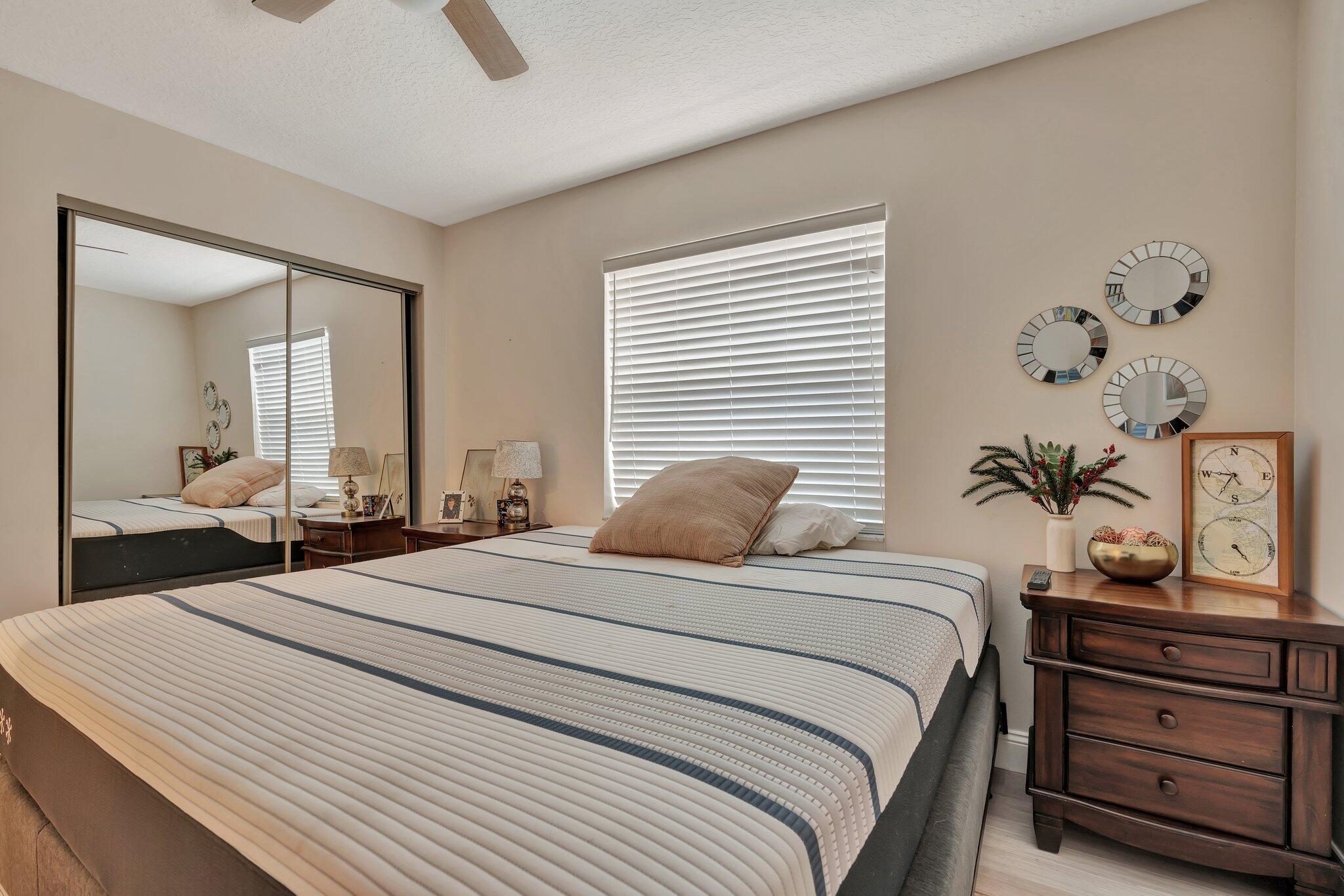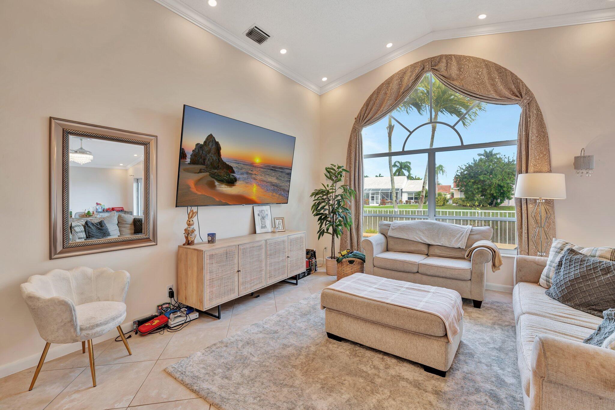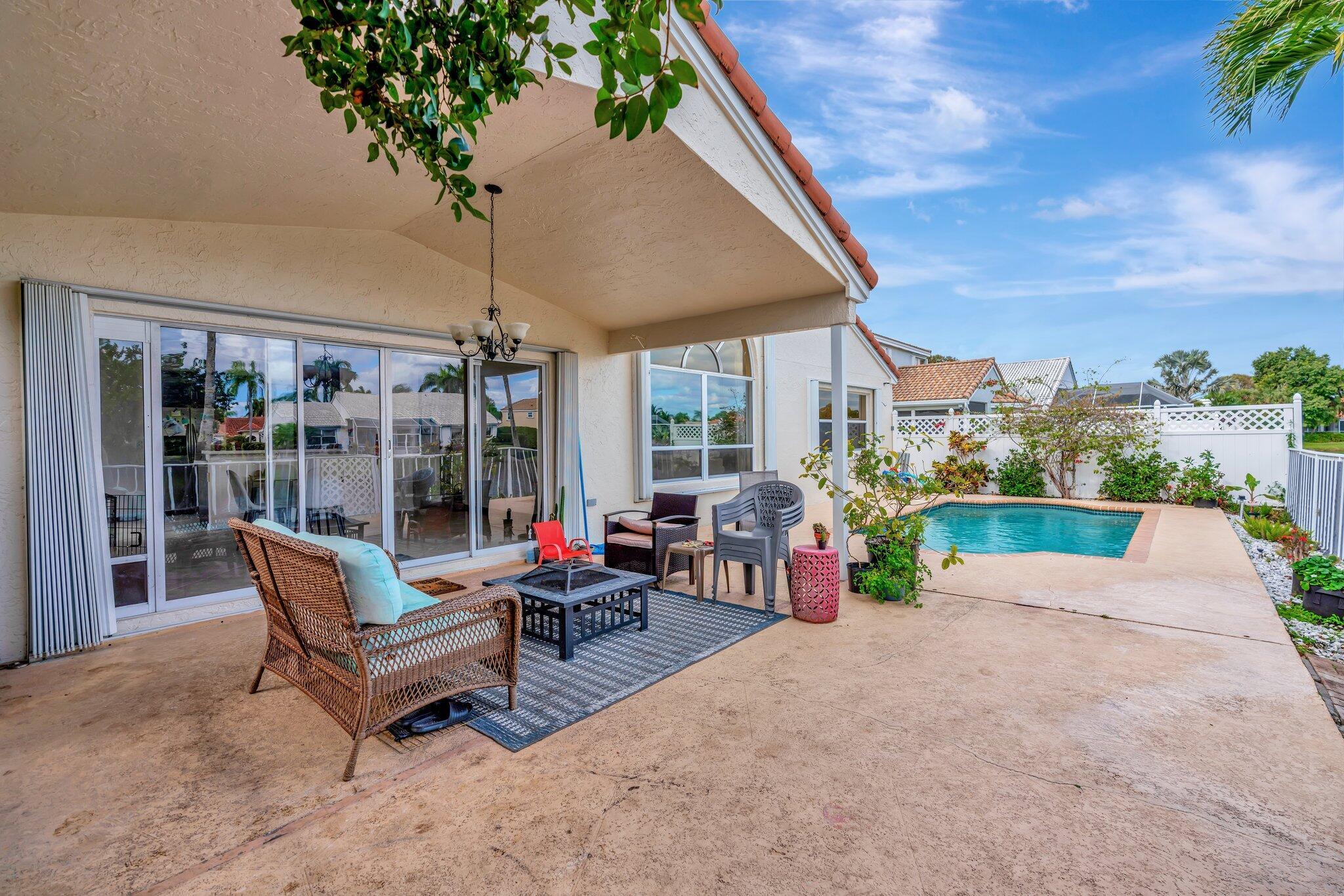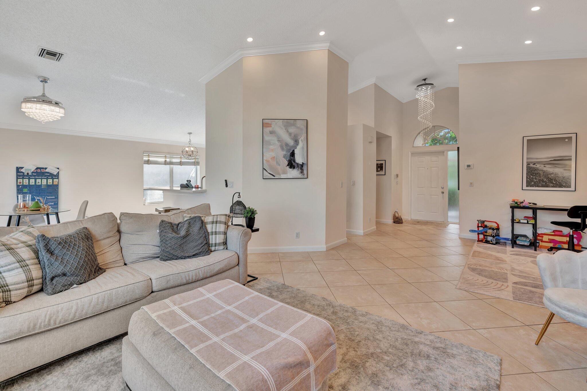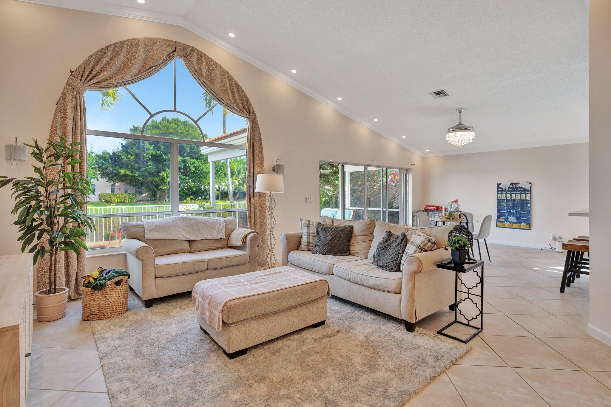 This is it! Stunning one level 3 bedroom pool home with beautiful eastern sunrise over yard and lake horizon. Completely renovated kitchen, completely painted march 2025 interior, soaring ceilings, tremendous lighting, centerpiece epic size window, overlooking pool. Newer roof, newer appliances, exterior paint 2 years ago. Tile and hardwoods in the bedrooms Chandeliers and fandeliers!Incredible association, fee only 234 a month includes: high speed internet, cable, and lawn care. Plus pool, pickleball, tennis and clubhouse!!AC is almost brand new with balance of 10 year transferable labor warranty! 2 Car garage.