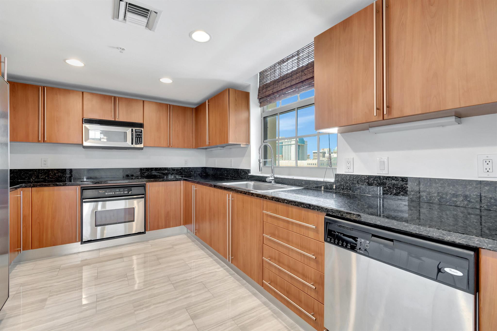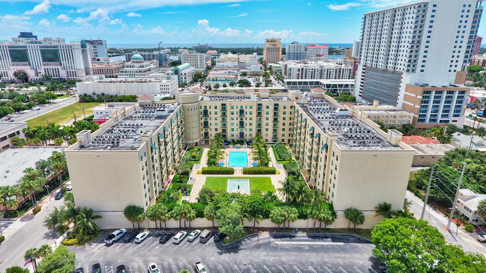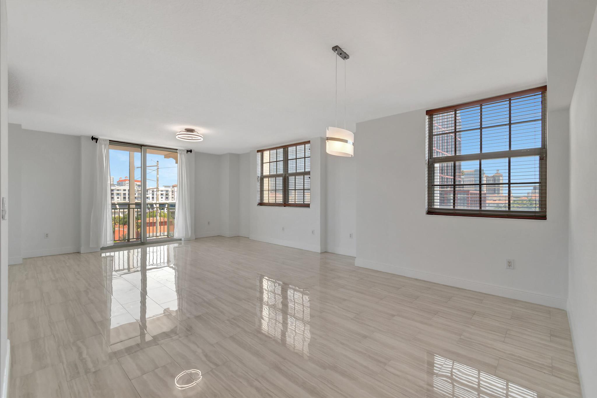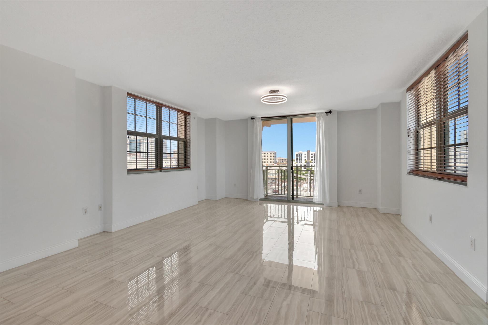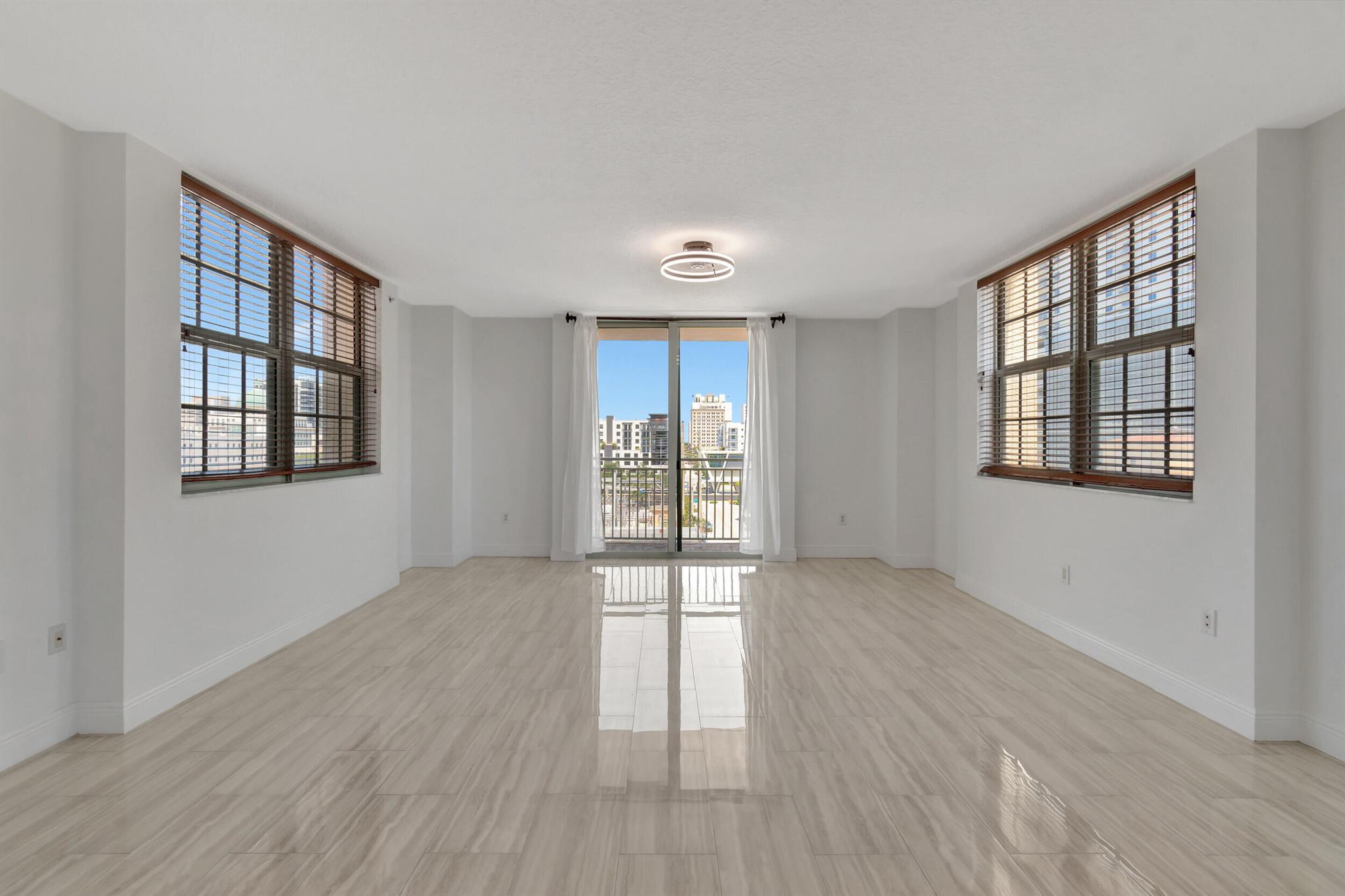 :LARGE FLOOR PLAN, 1,449 sq feet; LARGE KITCHEN with window above sink, 2 PARKING SPACES, 2 balconies, foyer, bright and cheerful corner unit, lots of windows. Located In the center of downtown, short distance to restaurants, shops, supermarket, PBI, Brightline and Tri-Rail trains, public library, The Square, waterfront park, beach, and more. Many in building amenities: infinity pool, 2 BBQ areas, Jacuzzi, sauna, steam bath, well equipped fitness center, 24-hr concierge, 24 hr security. Unit is newly upgraded with ceramic tile floor throughout, master walk-in shower. Schedule your private tour of this property today. Renter's insurance required.