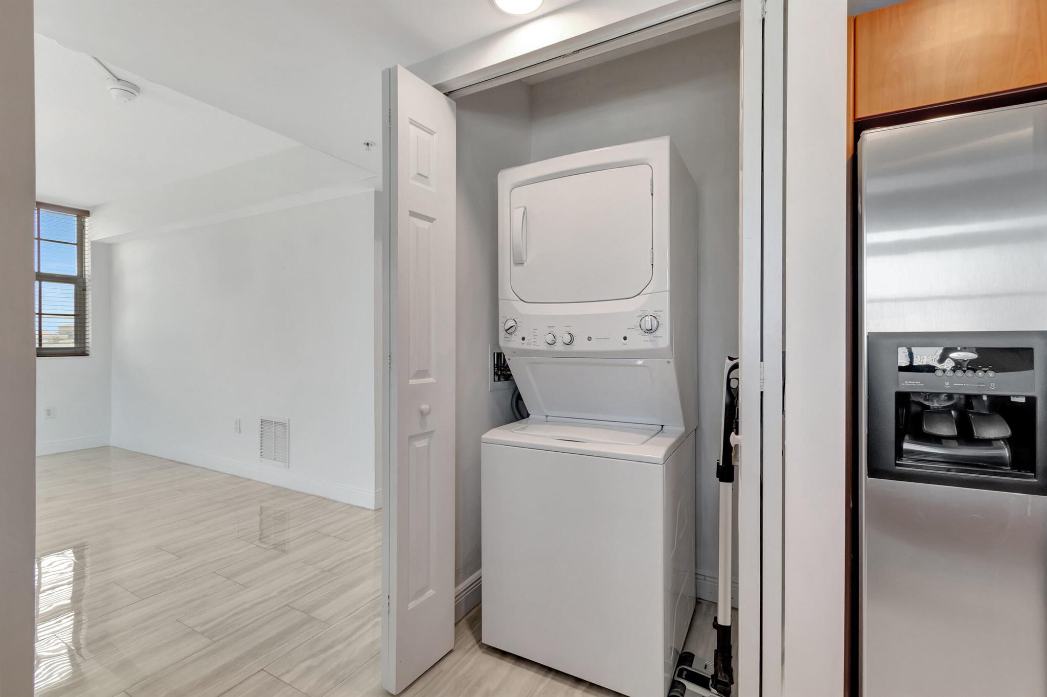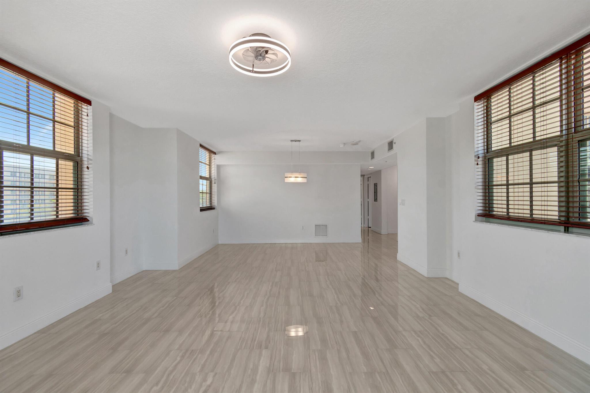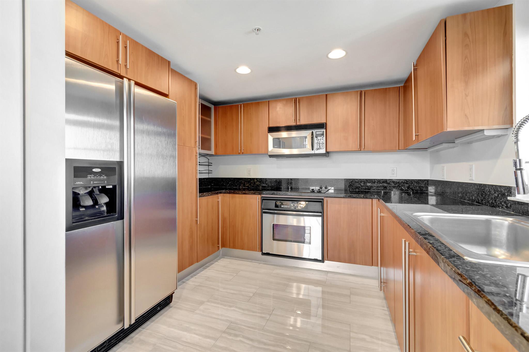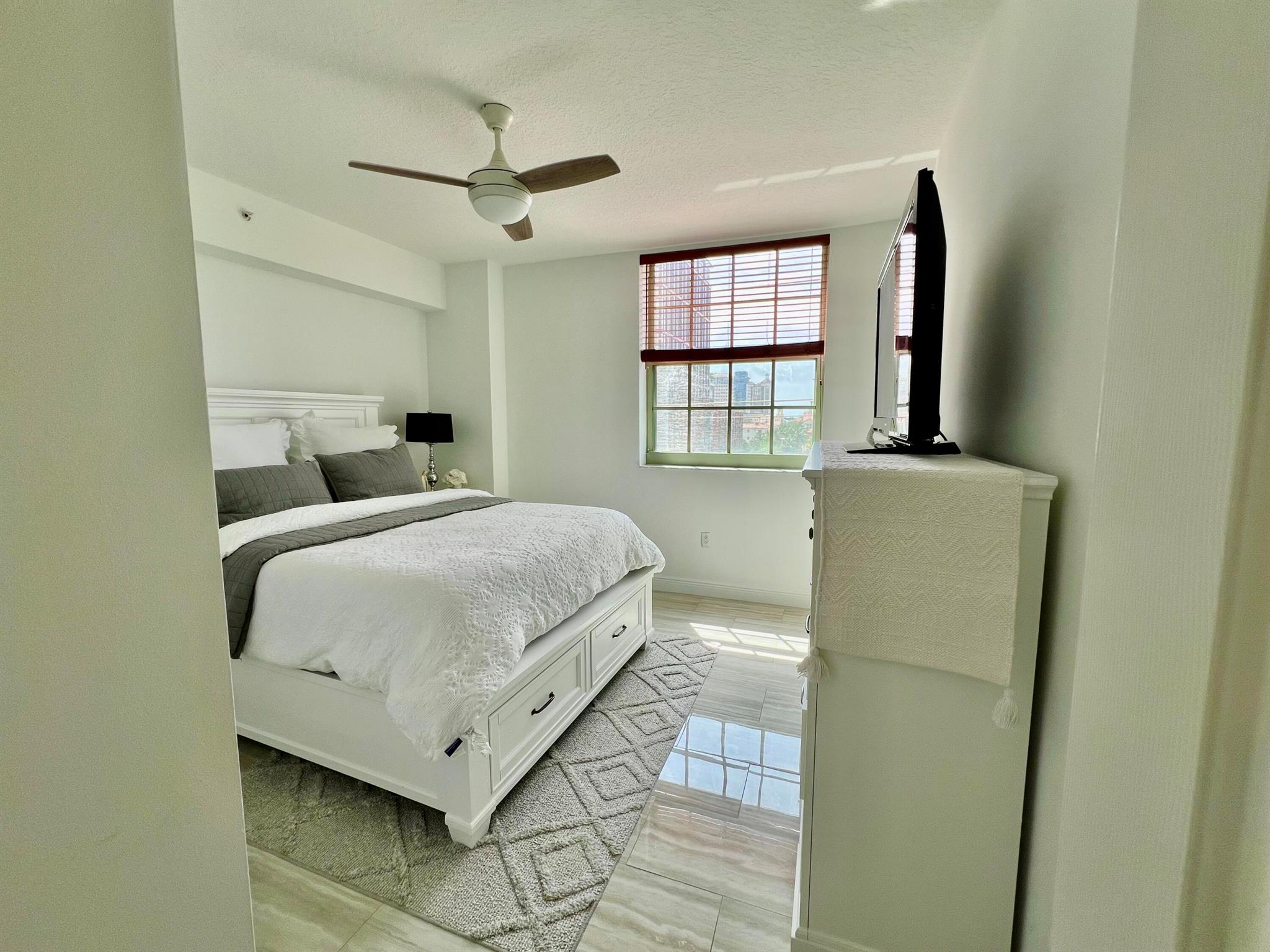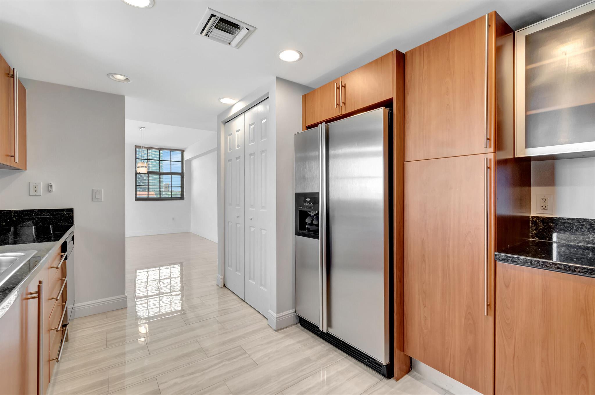 :LARGE FLOOR PLAN, 1,449 sq feet; LARGE KITCHEN with window above sink, 2 PARKING SPACES, 2 balconies, foyer, bright and cheerful corner unit, lots of windows. Located In the center of downtown, short distance to restaurants, shops, supermarket, PBI, Brightline and Tri-Rail trains, public library, The Square, waterfront park, beach, and more. Many in building amenities: infinity pool, 2 BBQ areas, Jacuzzi, sauna, steam bath, well equipped fitness center, 24-hr concierge, 24 hr security. Unit is newly upgraded with ceramic tile floor throughout, master walk-in shower. Schedule your private tour of this property today. Renter's insurance required.