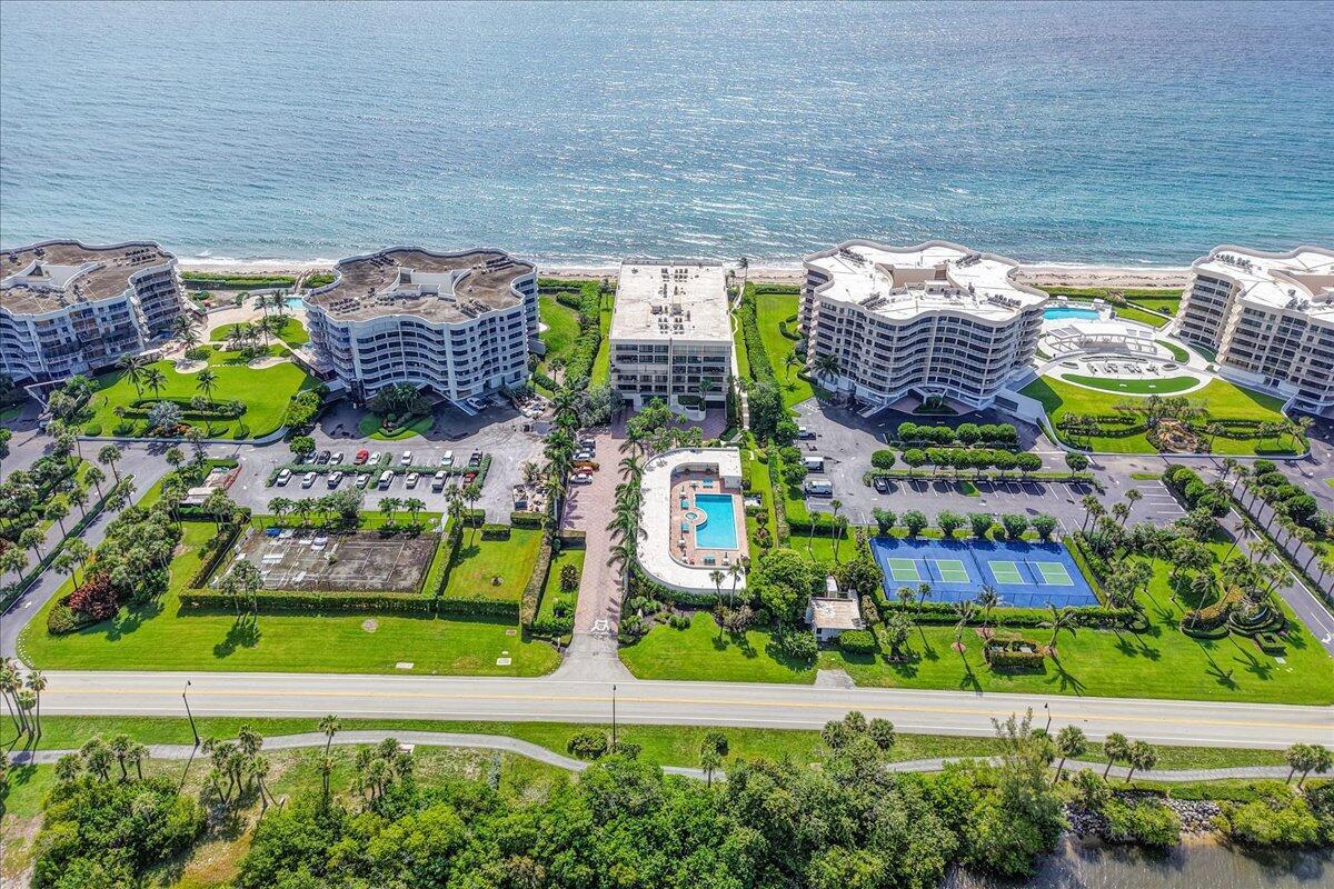 Welcome to 3390 S Ocean Boulevard-your dream Palm Beach retreat where ALL ASSESSMENTS FOR EMERAUDE CONDO INCLUDING A NEW ROOF HAVE BEEN PAID BY THE OWNER IN FULL!! This oceanfront boutique condominium offers breathtaking, panoramic views of both the Atlantic Ocean and Intracoastal Waterway from every room. Step onto your private wrap-around balcony and watch the sunrise over the waves, or enjoy an evening breeze as the sun sets over the pool. Featuring 3 spacious bedrooms, 3 updated bathrooms, and an open concept living space with floor to ceiling windows, this home seamlessly blends luxury and comfort.