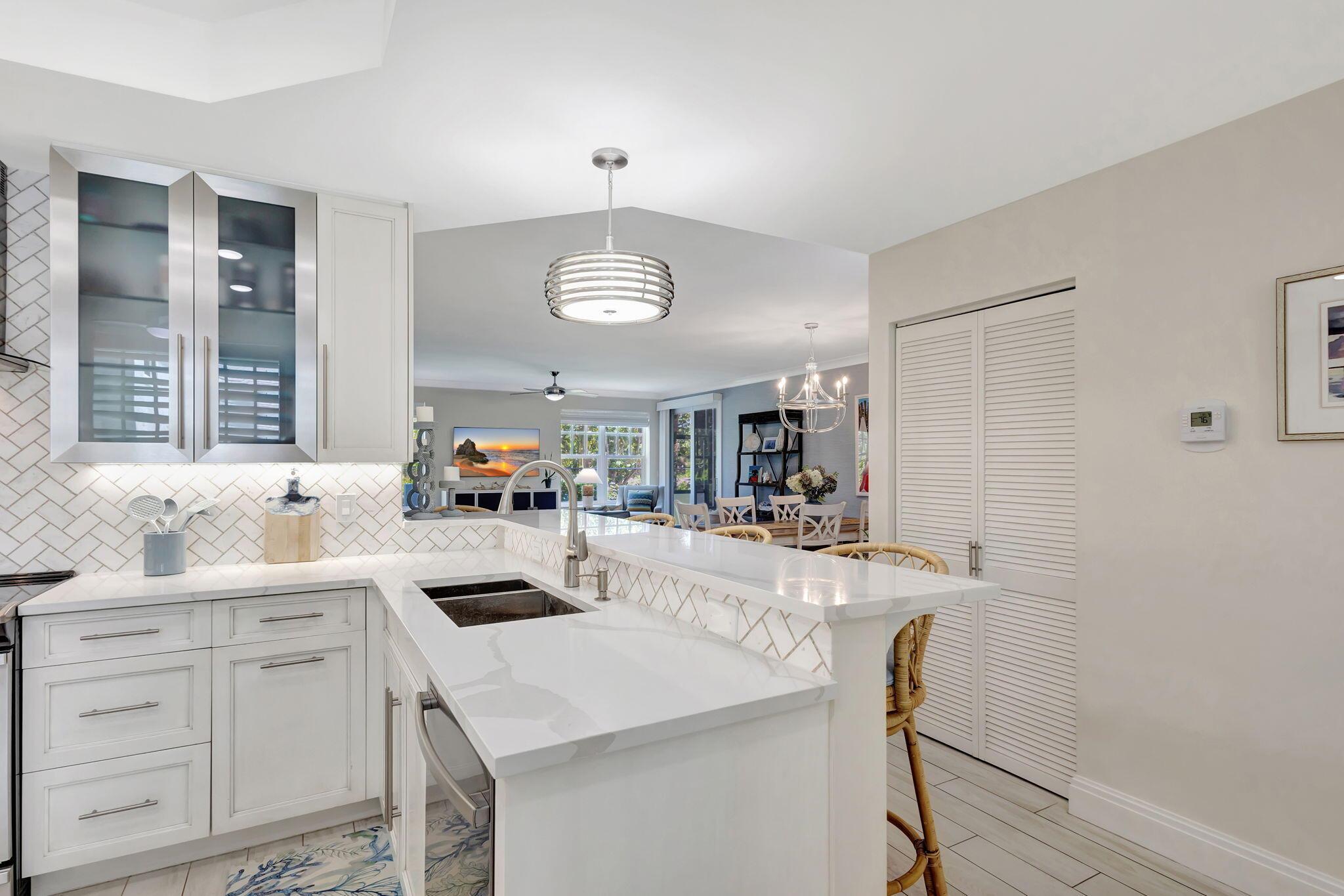 Discover paradise in this rarely available 3-bedroom, 3-bathroom beachside condo, renovated in Winter 2024 and just steps from Jupiter's pristine beach. Located in the dog-friendly community of Sea Colony, this single-story condo offers 1,822 square feet of living space--NO STAIRS! It features a 1-car garage and two screened lanais, perfect for relaxing to the sound of the waves while overlooking lush tropical landscaping. Bright and airy, the condo boasts high-end finishes, including a marble backsplash, quartz countertops, and tile throughout.Upon entering, you're welcomed into a spacious kitchen with counter seating, seamlessly flowing into the open dining and living area, which extends to a screened-in lanai.The split-bedroom floor plan ensures privacy: