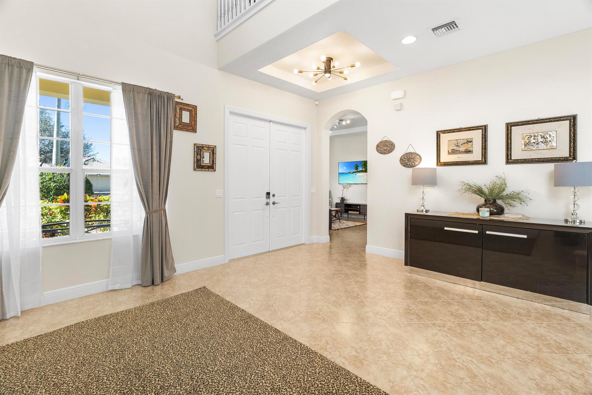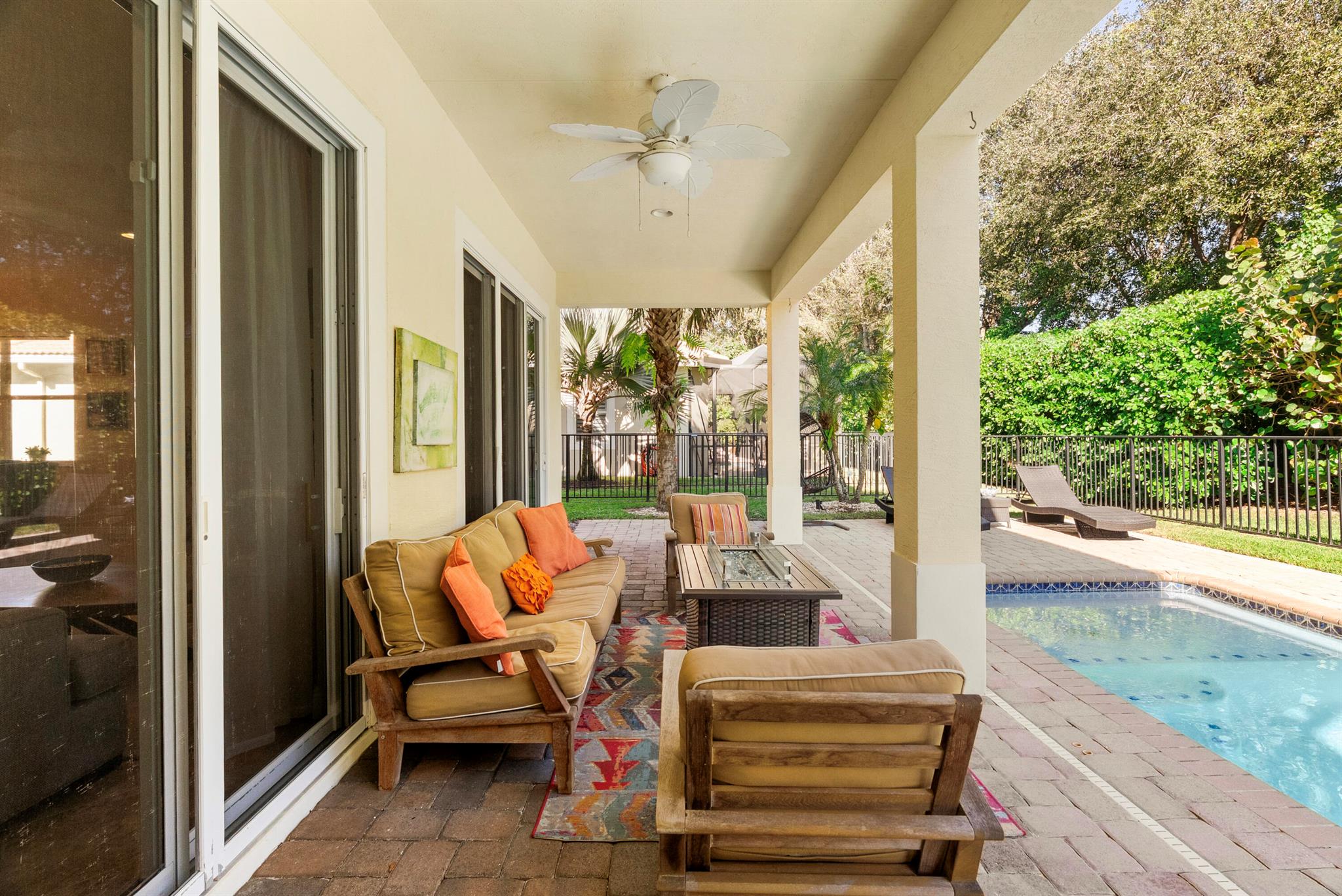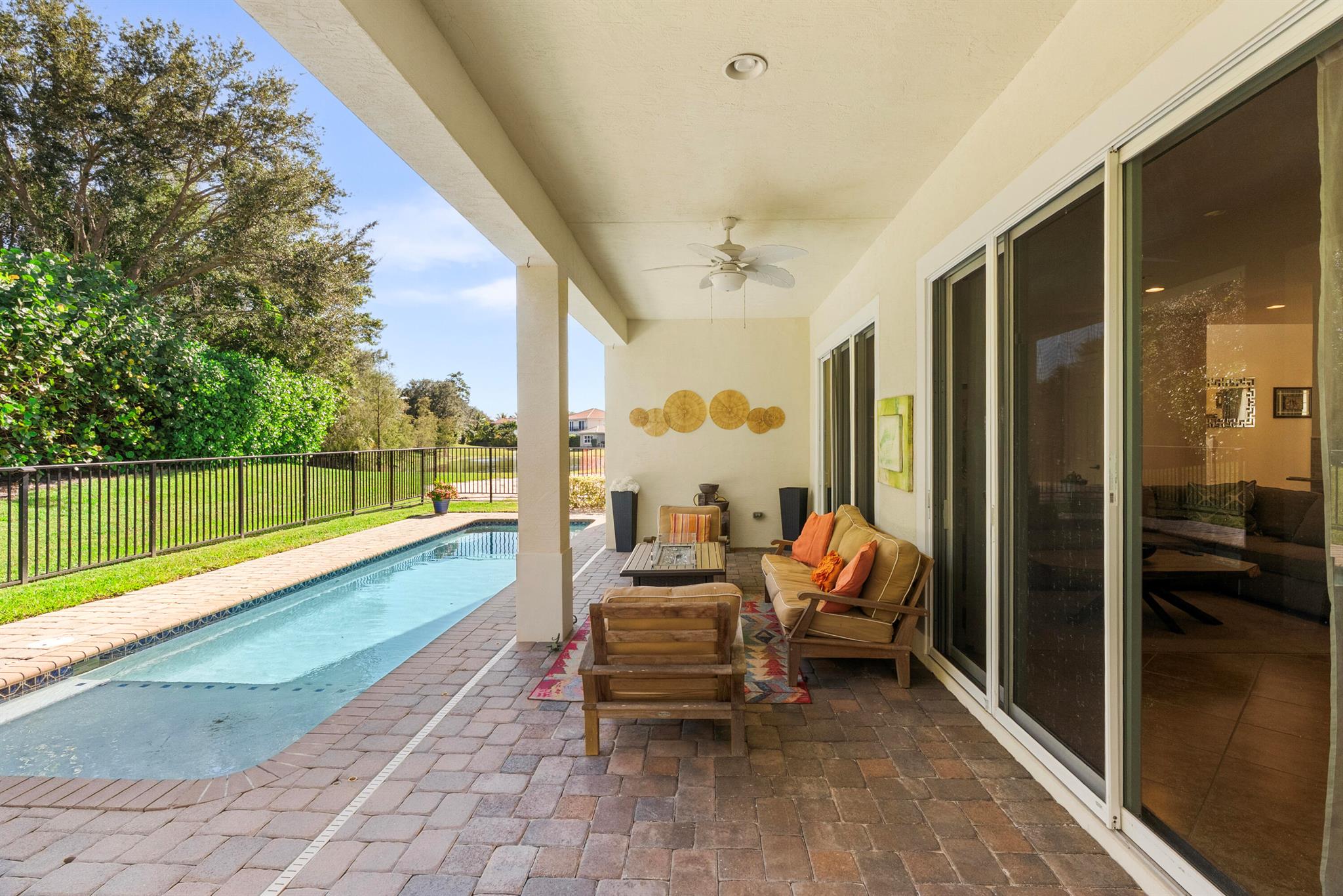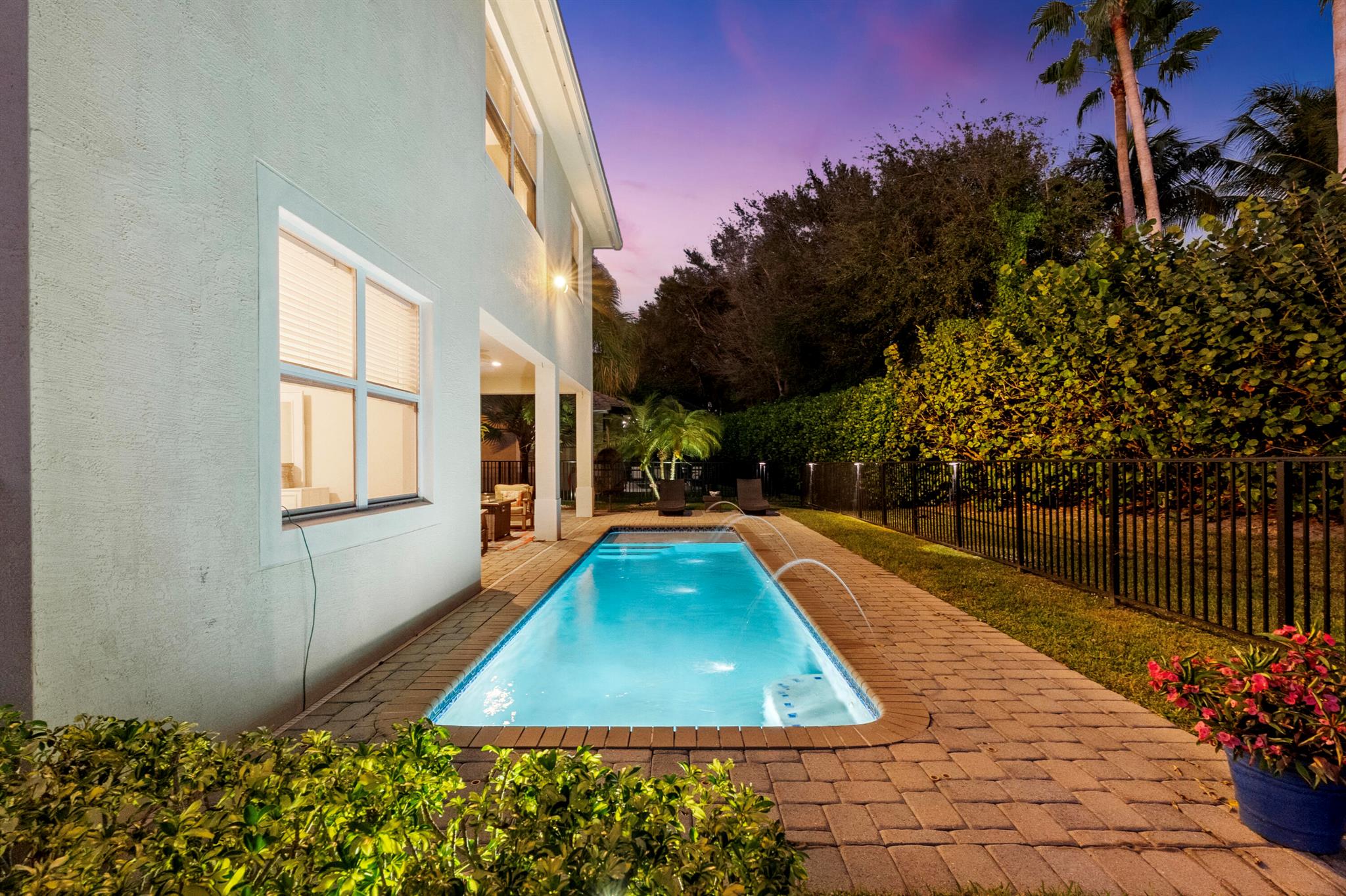 Introducing an exceptional new offering in the heart of Palm Beach Gardens. Situated within the prestigious gated community of Paloma at the Gardens, this beautifully upgraded 5-bedroom, 4-bath pool home delivers sophisticated style, effortless comfort, and undeniable value.A grand living room with soaring ceilings sets the tone upon entry, guiding you into an inviting family room and open kitchen designed for both connection and comfort. Sliding glass doors frame the serene private pool, creating a seamless indoor-outdoor living experience. The family room is highlighted by a custom-designed wall unit with a multi-color feature fireplace, while the renovated open kitchen showcases modern cabinetry, sleek finishes, and newer appliances.Each bathroom has been thoughtfully upd