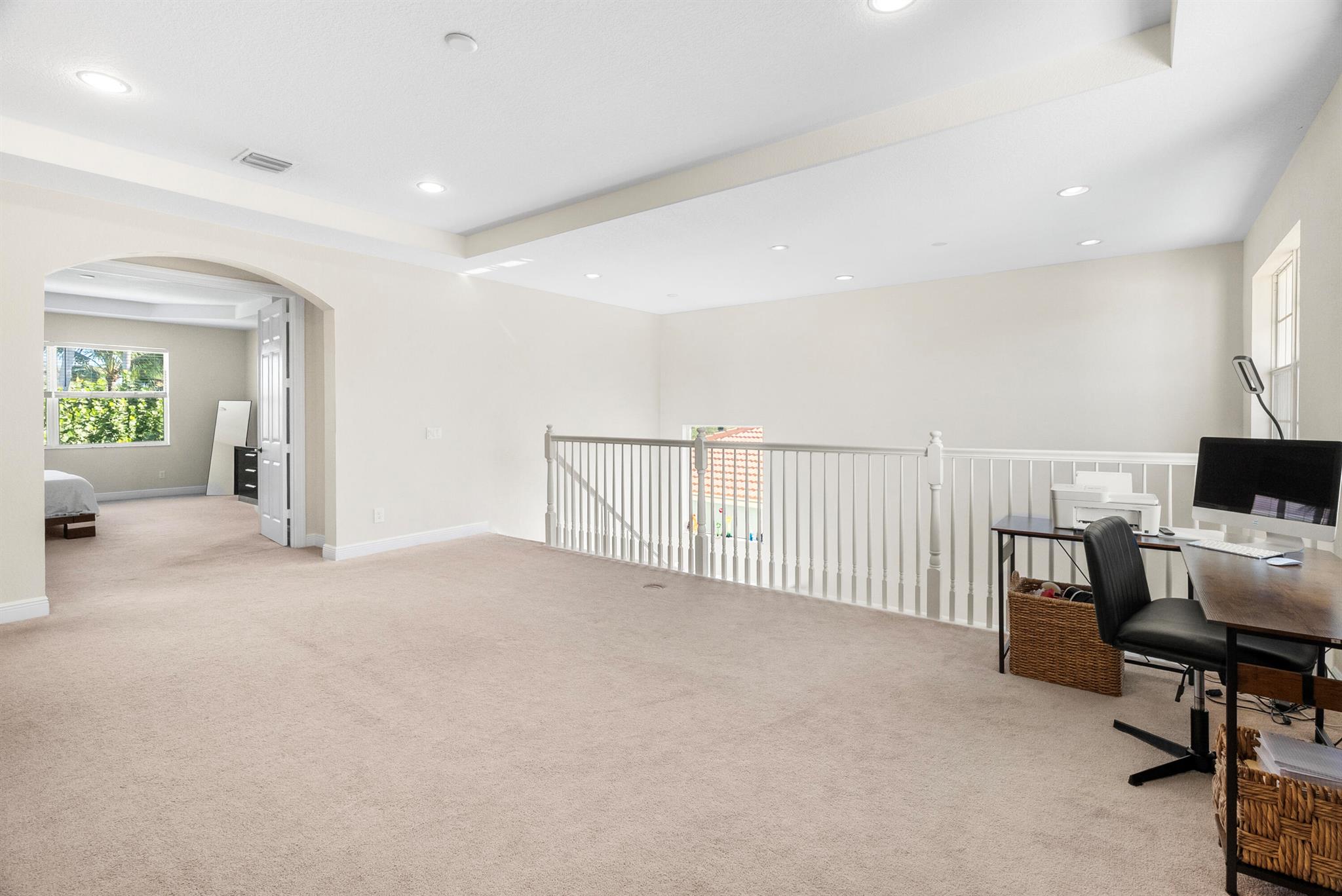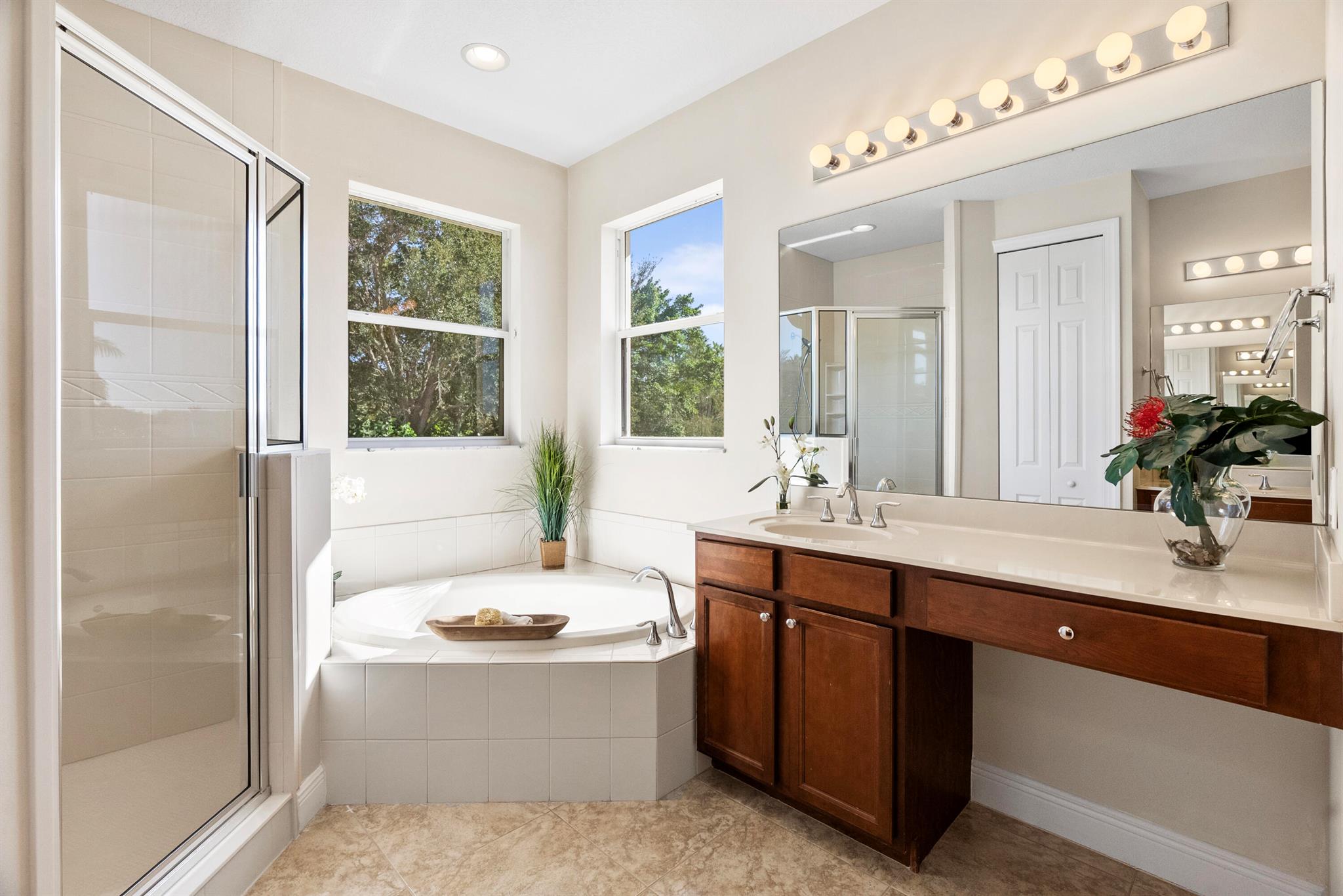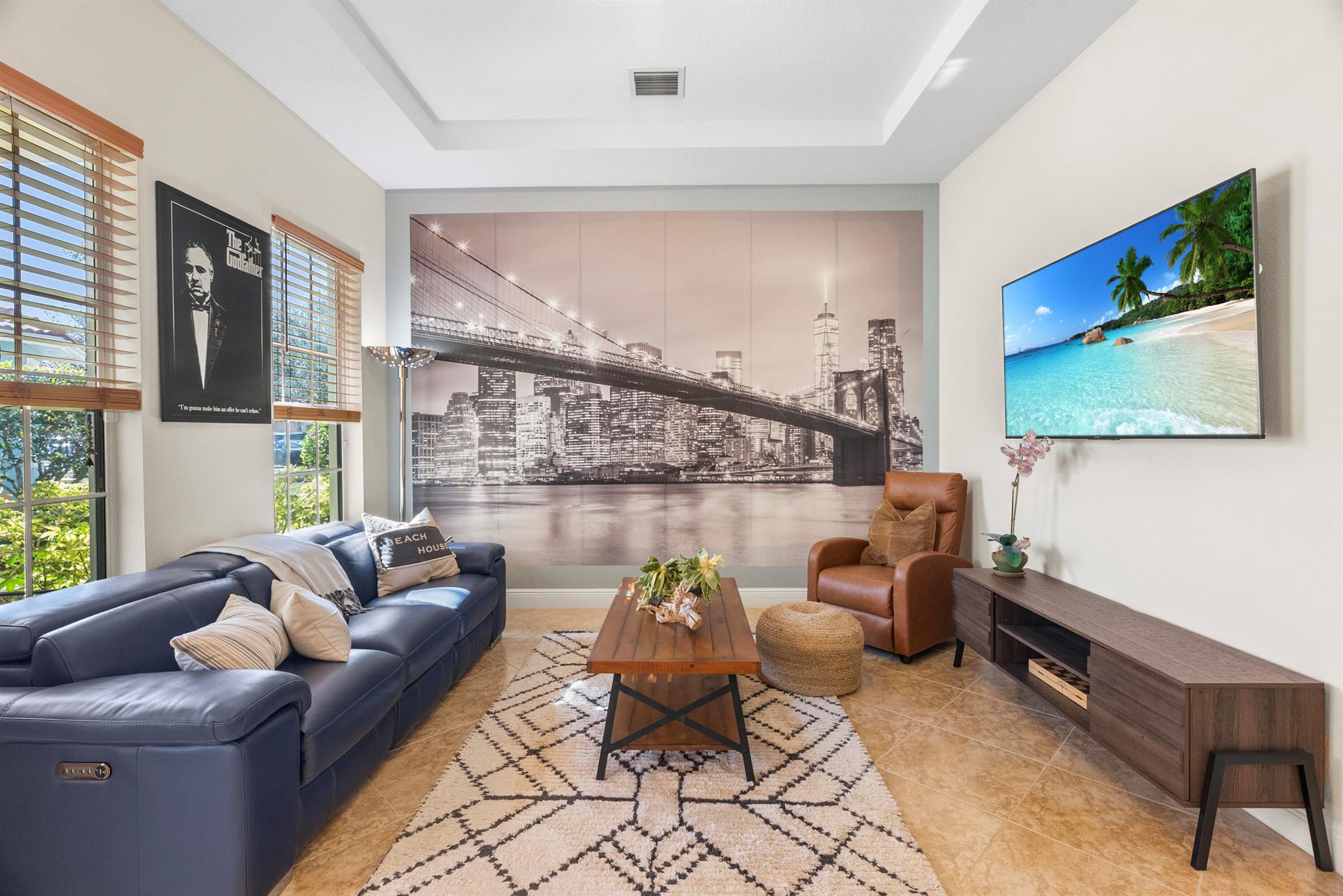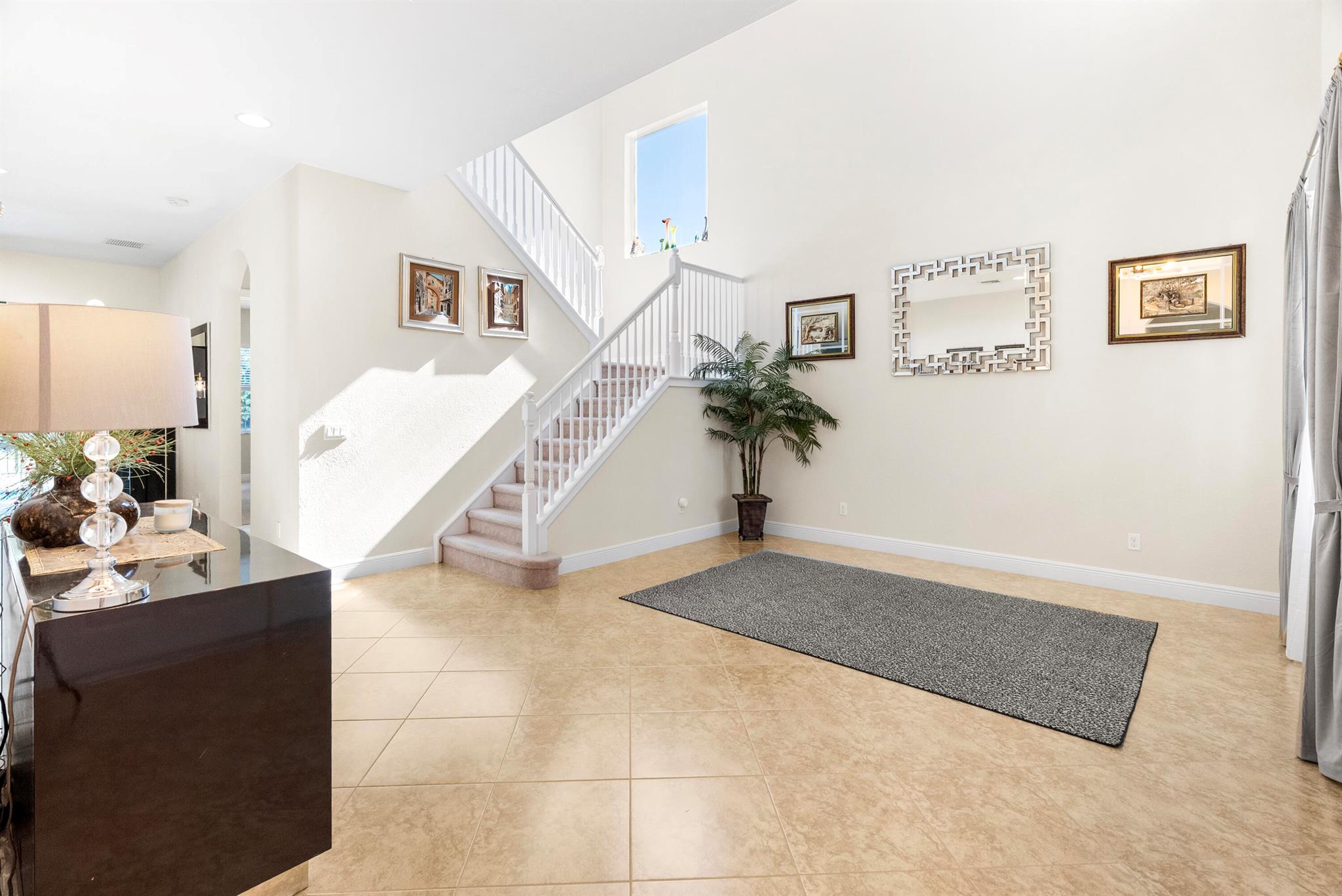 Introducing an exceptional new offering in the heart of Palm Beach Gardens. Situated within the prestigious gated community of Paloma at the Gardens, this beautifully upgraded 5-bedroom, 4-bath pool home delivers sophisticated style, effortless comfort, and undeniable value.A grand living room with soaring ceilings sets the tone upon entry, guiding you into an inviting family room and open kitchen designed for both connection and comfort. Sliding glass doors frame the serene private pool, creating a seamless indoor-outdoor living experience. The family room is highlighted by a custom-designed wall unit with a multi-color feature fireplace, while the renovated open kitchen showcases modern cabinetry, sleek finishes, and newer appliances.Each bathroom has been thoughtfully upd