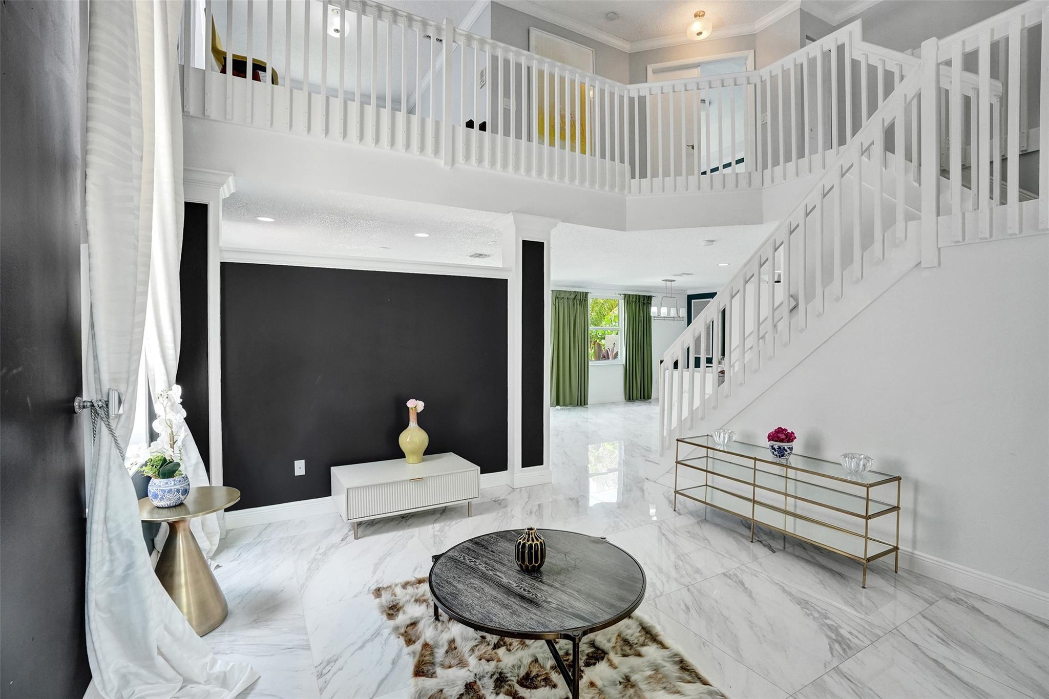 Welcome to your dream home in the heart of Madison Green Country Club a golf community. This beautifully upgraded 3-bedroom plus Loft , 2.5-bathroom residence seamlessly blends elegance with functionality. Upon entering, the formal living room welcomes you with a striking 2-story ceiling, creating a sense of spaciousness and sophistication. The updated kitchen, features stainless steel appliances and a snack bar. The adjacent dining area effortlessly flows into the inviting family room, all part of an open floor plan designed for both entertaining and everyday living. Neutral flooring throughout the home complements any decor, and large windows flood the space with tons of natural light. Amazing public golf course, a pro shop, and bar/grille room. New Impact Windows & Doors.