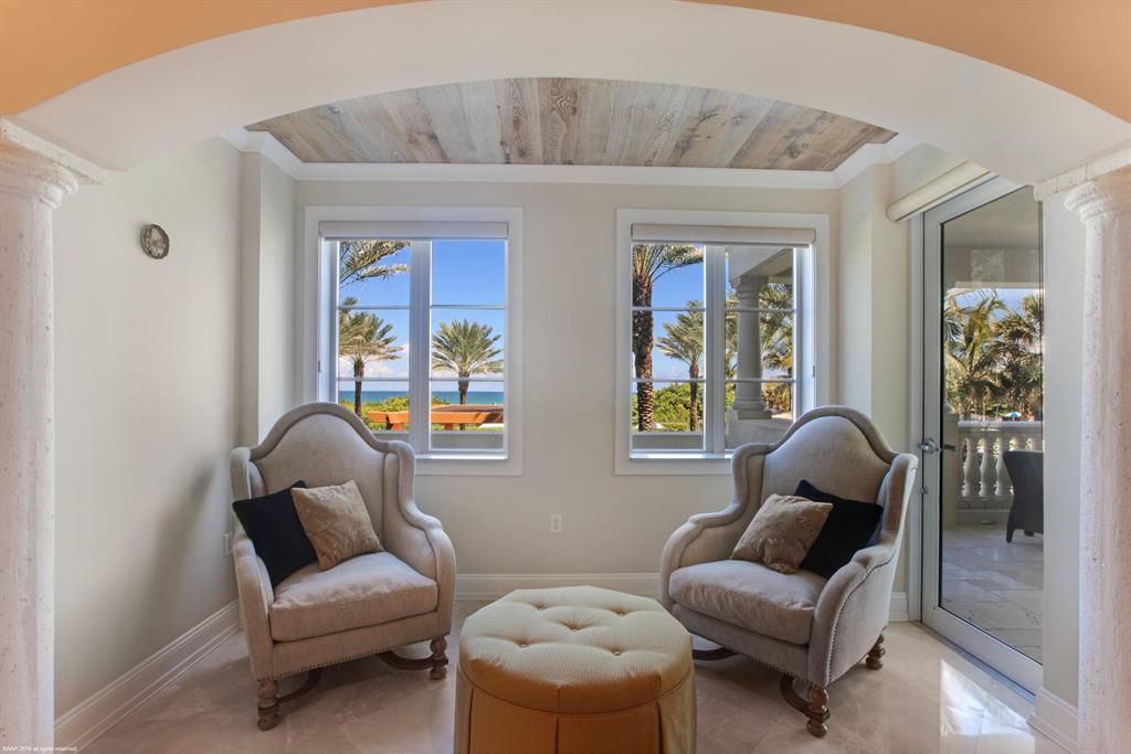 Amazing oceanfront condominium. Located in Palm Beach Shores' most luxurious, boutique building. This magnificent condominium truly lives like a home and features bright open living areas with panoramic ocean views. Impressive features include a large contemporary kitchen, outfitted with Viking, Gaggenau and Bosch appliances. Entertain in the spacious formal dining room, outfitted with custom cove lighting and custom marble floor with wood inlays.The graciously proportioned master suite, with sitting room, offers captivating ocean vistas. Spoil yourself in the decadent master bath, complete with a Kholer infinity spa tub. All rooms have direct access to over 700 sf of covered balcony space. Dolcevita is home to only 34 residences, situated on a lushly landscaped 4-acre oceanfront site.