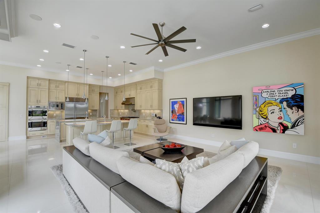 This beautiful 6BR, 6.5BA plus playroom/game room ''smart house'' w/elevator has combined a private setting with a contemporary design; professionally decorated by Bruce Bierman Designs, Inc., whose signature minimalism is streamlined throughout and creates an atmosphere of tranquility due to the subtle hues of the home's palette, commingled with the Florida sunlight to make the space feel profoundly luxurious. Featuring 42'' limestone floors throughout the main living space & wood staircase with glass banister. The living room, with an accented stone wall fireplace, showcases the sprawling infinity pool, covered loggias, summer kitchen & patio, all overlooking the endless lake. 3-car garage, full-house generator, Sub-Zero & Wolf appliances. Expanded master bedroom & custom closet.
