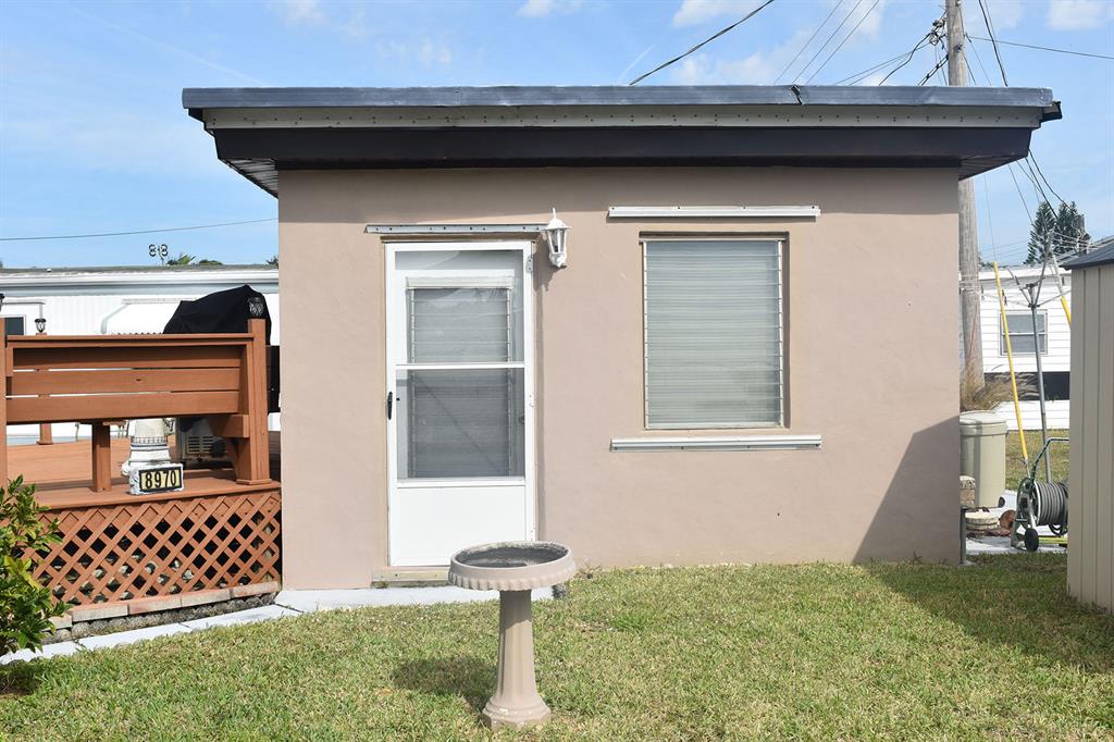 Spacious, beautifully maintained 2 BR, 2BA manufactured home on a double, corner lot. Too new for interior photos. Kitchen boasts island w/cooktop, vent fan & seating for 4. Tons of closets & storage. Solar hot water heater, 175 mph tie-down pad for A/C, large deck for BBQs & outdoor relaxation. Storm shelter has full bath & window A/C. Furnished with inventory on request. Dish for cable included (AT&T/Dish Network), Xfinity also available in community. DEEDED LOT, NO LAND LEASE, on septic. Enjoy seasonal or year-round Florida living. NO LEASE 1st 3 yrs, MAX. 2 pets <40 lbs. Being sold AS-IS with right to inspect. Room sizes approx, buyers must verify dimensions. Pine Grove Village is a mobile/manufactured home community, centrally located in Boynton Beach, 15 minutes from the ocean.