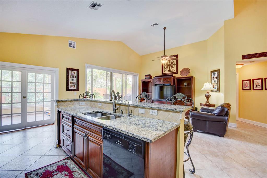 4/2.1/2 + DEN. MASTER bedroom plus a bonus room DOWNSTAIRS. Bonus room has impact glass and is fully permitted. Vaulted ceilings and open layout. the rear exterior features covered and open patio. A/C 2009. Kitchen was updated in 2013, newer granite & cherry wood cabinets with molding and frames. Tile and laminate floors throughout. There is NO CARPET. Organizers in the walk in closets. The spacious backyard features several mango trees and plenty of ROOM for a POOL. Low HOA fees and EXCELLENT schools make this community an intelligent choice.