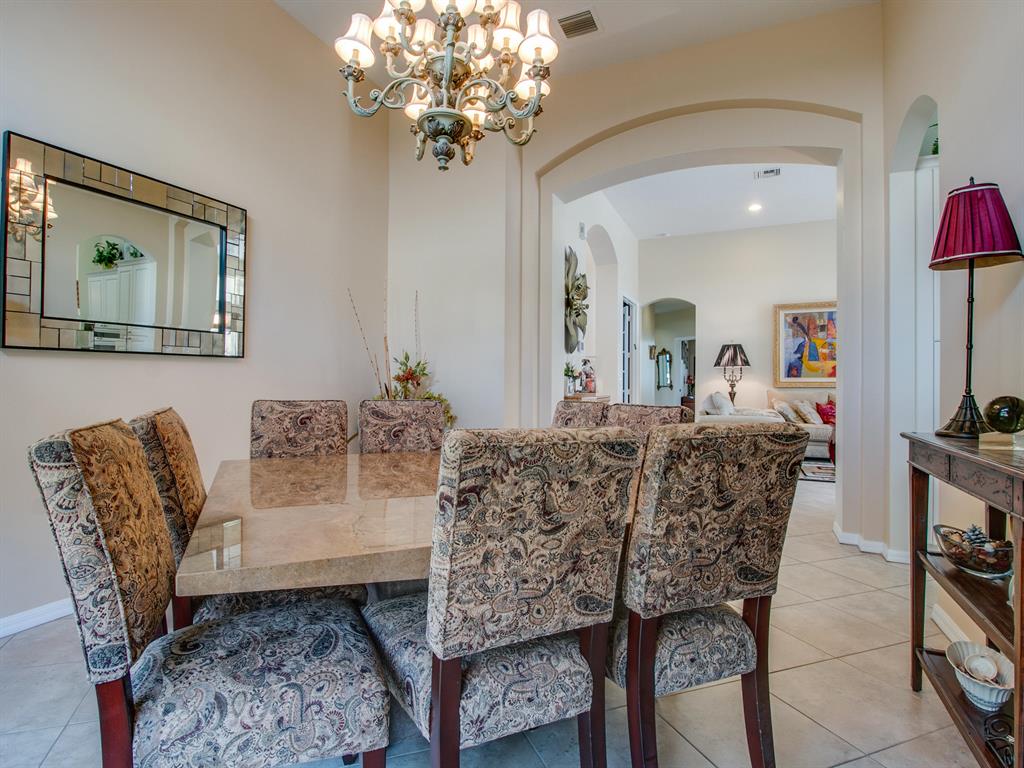 This Lovely Home is a Must See!!! Light, bright and airy Verona-B model with 3 bedrooms plus Den/Convertible bedroom, 2.5 baths and gorgeous lake , rock waterfall and pool views. Upgrades include: etched glass front doors, A/C and water heater (3 years old), accordion shutters. The kitchen has 42'' white cabinetry, black granite countertops and backsplash, stainless steel refrigerator, dishwasher and microwave, breakfast area and snack bar. Neutral tile on the diagonal throughout living areas and den/conv bedroom. Light toned laminate flooring and fans in all bedrooms. Master suite consists of tray ceiling, bay window, California style closets, soaking tub and dual sinks. Spacious living and dining room make this home perfect for entertaining! Click ''MORE'' for community info
