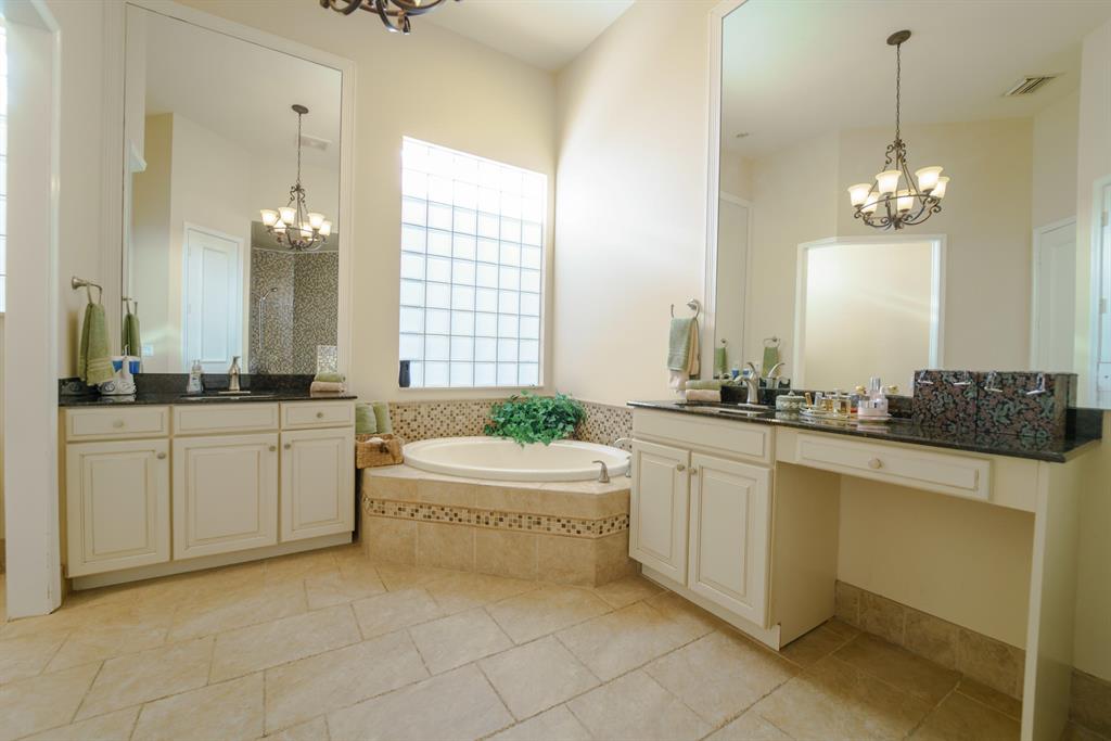 Exquisite Chateau model home nestled in the sought-after Esperanza community of Mirasol. This home offers elegance and class personified through lush landscaping, soaring ceilings, custom crown molding, vast windows, automatic black out shades, custom window treatments, accordion shutters, heated pool with waterfall, serene and private lake views, spacious open concept kitchen with gas appliances. The well appointed master bedroom boasts panoramic water views, custom walk in closets, and a tasteful master bath with dual vanities, spa tub and separate walk-in shower. There are two additional bedrooms, both with en suite bathrooms, as well as an office and study/den. The well designed split floor plan ensures privacy and space for all of your needs.