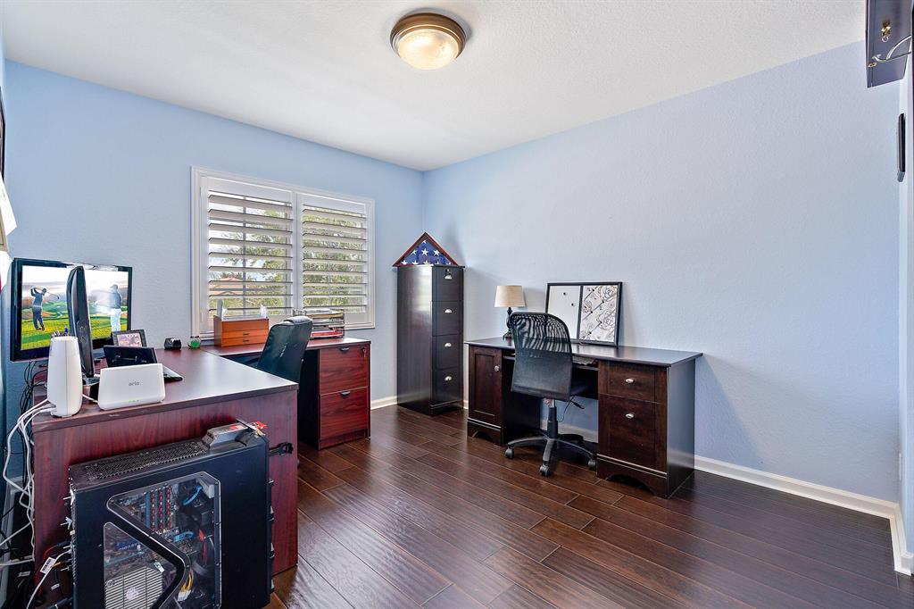 Impeccably maintained large home on oversized pie shape lot backing up to preserve. Enjoy outdoor entertaining on the extended back patio and professionally landscaped fenced yard. Inside you'll find a newly renovated gourmet kitchen with white quartz countertops, stainless steel appliances, and large walk-in pantry. Large master bedroom with two walk-in closets, dual sinks, soaking tub, and separate shower. Easy to maintain with tile throughout downstairs and wood laminate upstairs. Tons of upgrades: plantation shutters, crown molding, smart thermostat and other smart home features, alarm system, security cameras, and much more!