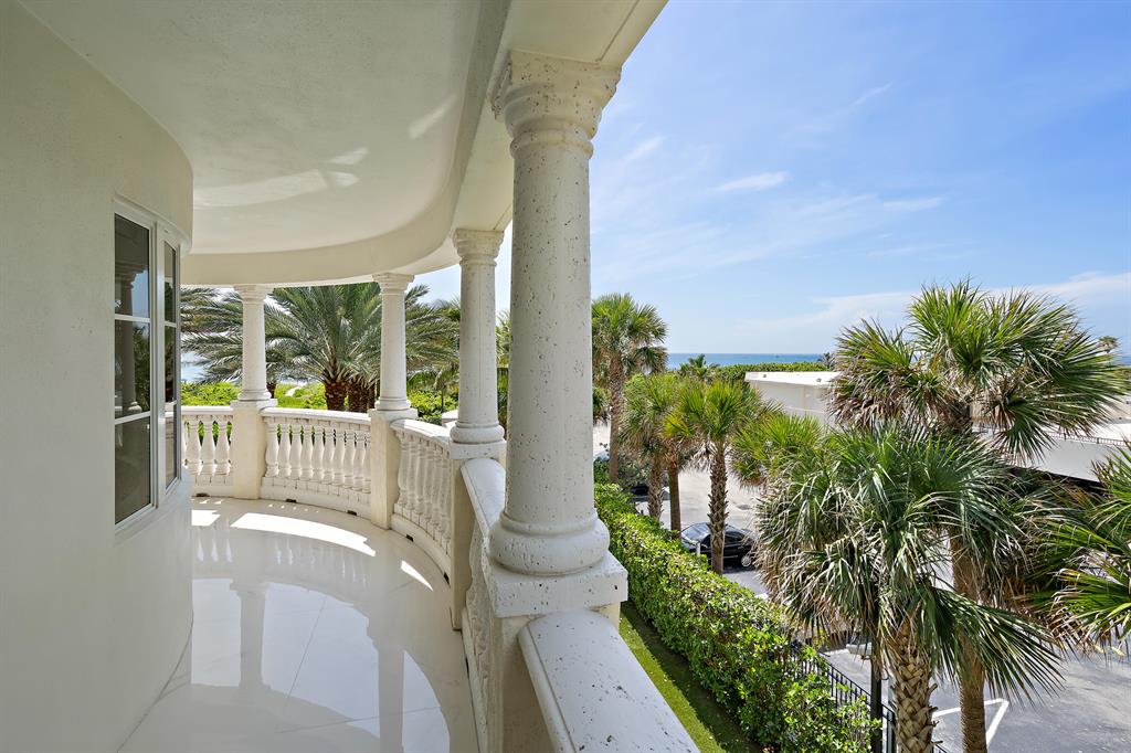 Rarely available, direct oceanfront SE corner residence in an amazing, boutique, luxury building, Looks and lives like a 5-star resort. Expansive, lushly landscaped grounds, spanning 2.7 acres w/150' of beachfront. Monitored and gated entrance with porte-cochere arrival. Exceptional amenities, including well-appointed, manned lobby, inviting owner's lounge and bar, fully equipped gym, business center and Singer Island's most stunning pool. Magnificent, updated/upgraded former model residence with 3295 sf of interior space and 700+ sf of covered balconies. Thoughtfully conceived floor plan truly lives like a home and features bright open living areas, large custom kitchen and an indulgent master bedroom. Incredible attention to detail and no expense spared in the choice of materials.