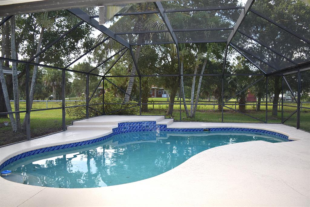 Lovely three-acre setting in a quiet neighborhood. The newly painted (interior and exterior) three bedroom - two bath main house is 1,766 square foot living. Detached 840 square foot mother-in-law quarter has impact windows, one nice-sized bedroom, full kitchen, tile throughout and a hurricane room. Mother-in-law quarter also has a manual-transfer generator. A screened-in pool and patio lies between the main house and mother-in-law quarter. The metal workshop on the property is approximately 1000 square foot with electrical and water. The property is fully fenced and cleared.