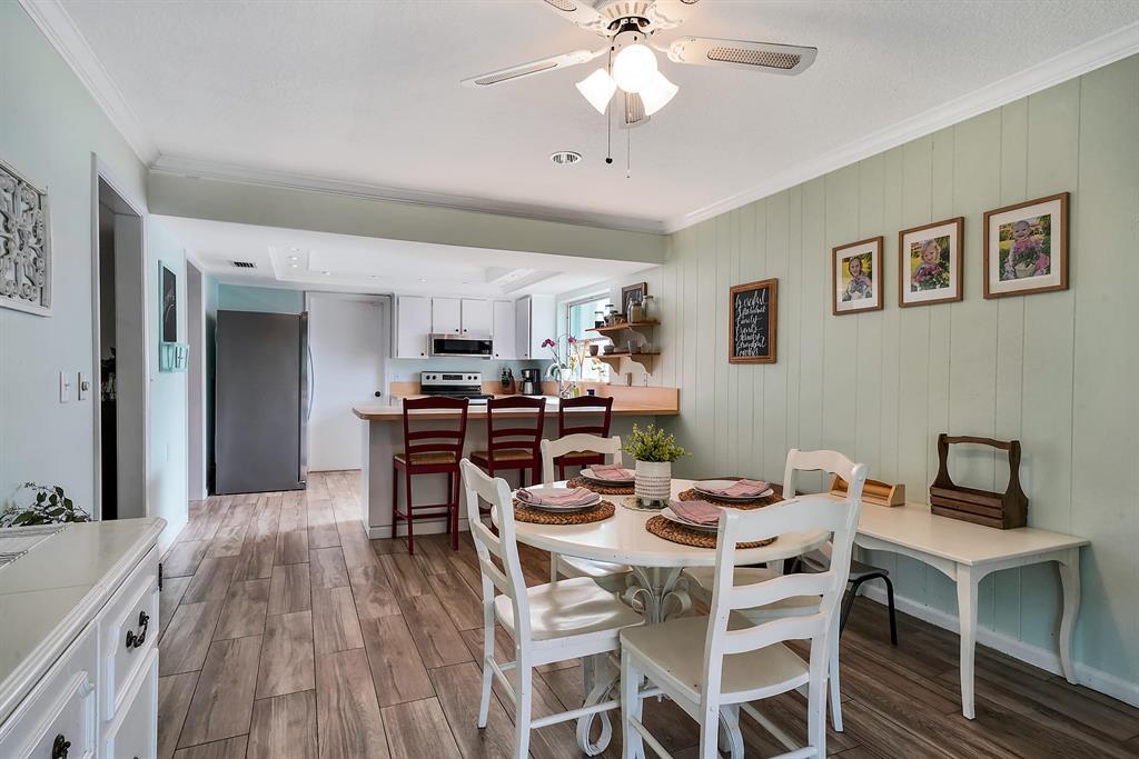 NO HOA - 3 Bed, 2 Bath, 2 Car Garage on a secret cul de sac in NPB. This CBS home features wood-look tile in driftwood tones and crown moulding THROUGHOUT. Past the foyer, find formal dining adjacent to the living room w/ sliding glass door and natural light. Next, the kitchen features a NEW Stainless Steel appliances, white cabinets and floating shelves. The kitchen overlooks an informal dining area and family room with sliding glass door to the 28' X 10' covered lanai and backyard. Inside, 2 guest rooms feature floor to ceiling windows and are served by a full bath with subway tiles and brushed nickel fixtures. The Master Bedroom STUNS w/ a sitting area, glass door to lanai, walk-in closet and glass door shower. Finally, a 2 car garage, home warranty, just minutes to everything you love!