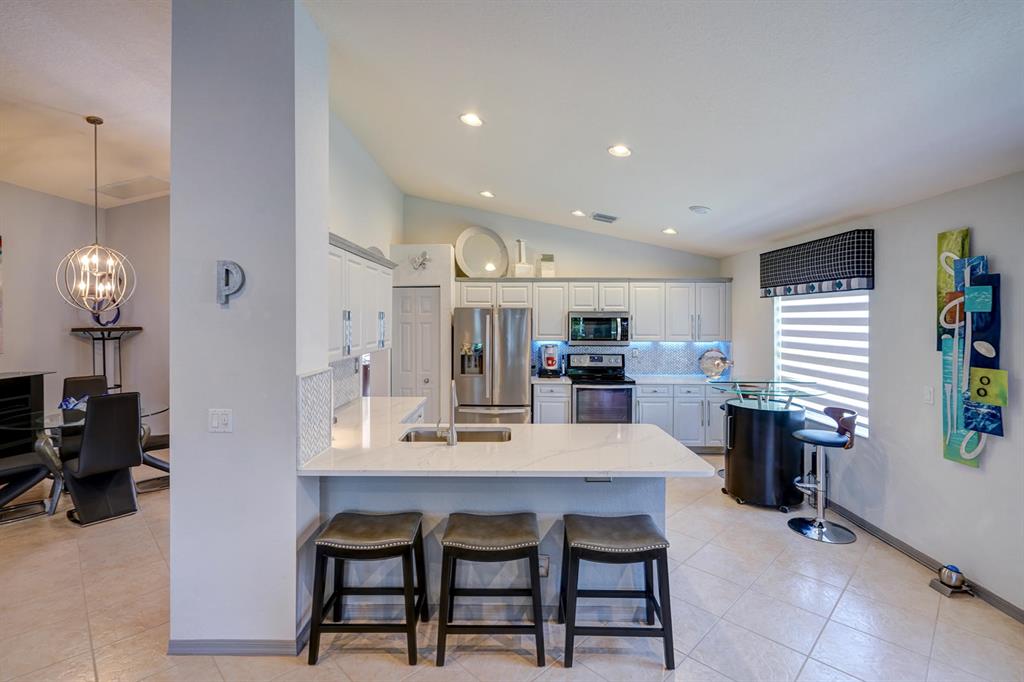 Pristine 3 bed / 2 bath Este model on premium lake lot with serene water views located within the gated active adult community of Ponte Vecchio in Boynton Beach. This beautiful home boasts well manicured landscaping, 2 car garage, open floor plan, upgraded kitchen featuring quartz countertops, designer wood cabinetry, stylish herringbone pattern backsplash, top of the line stainless steel appliances and large windows providing great natural light. The rest of this gorgeous residence showcases well appointed interior finishes including neutral color palette, textured walls, arched entryway architectural accents, recessed lighting, vaulted ceilings, tile flooring that has been professionally restored with new grout and filling as well as updated second bathroom with glass shower,